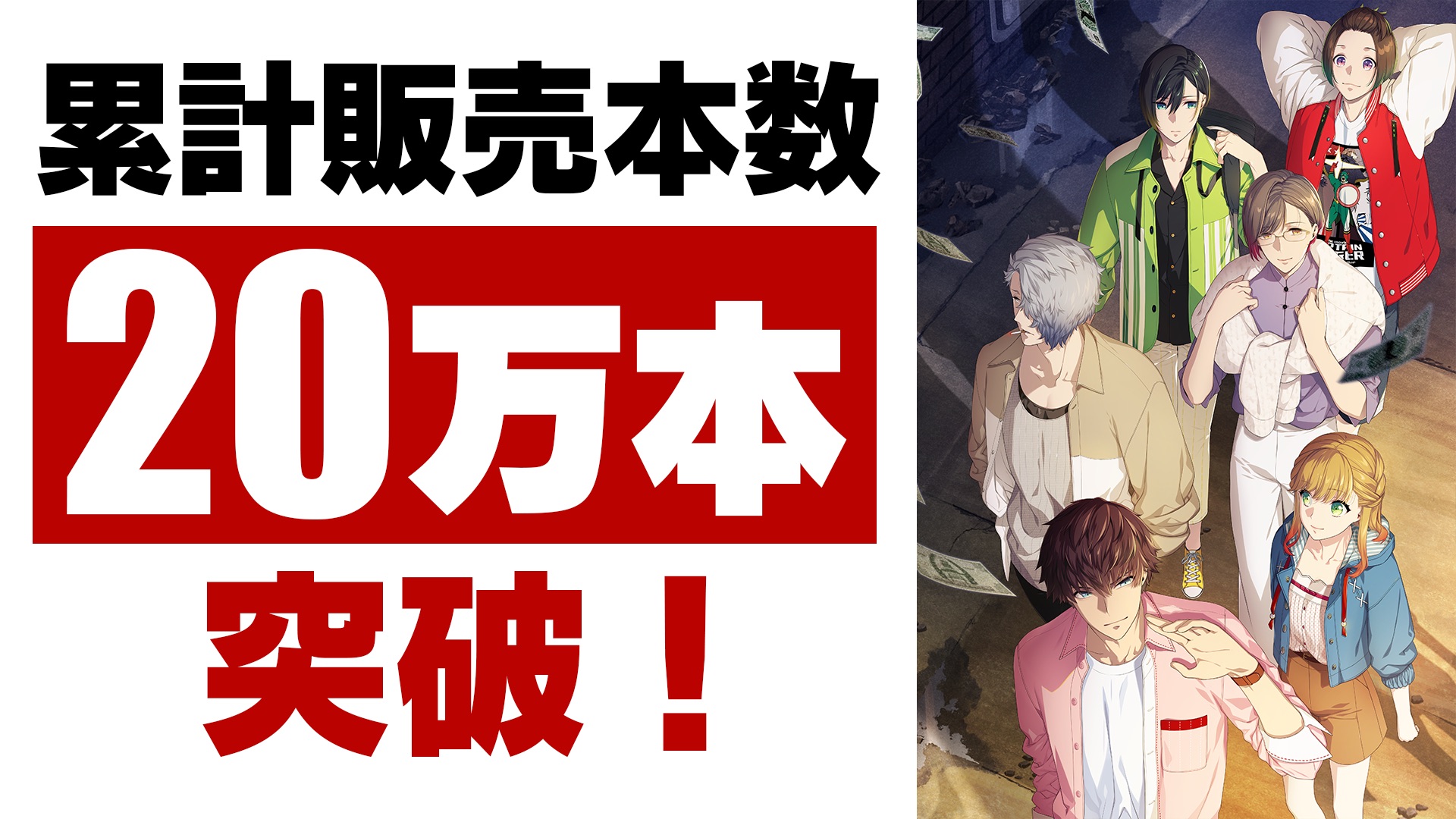 シネマティックアドベンチャーゲーム『BUSTAFELLOWS』の、日本語版、英語版、中国語版を合わせた全世界累計販売数が20万本を突破したことをお知らせいたします。