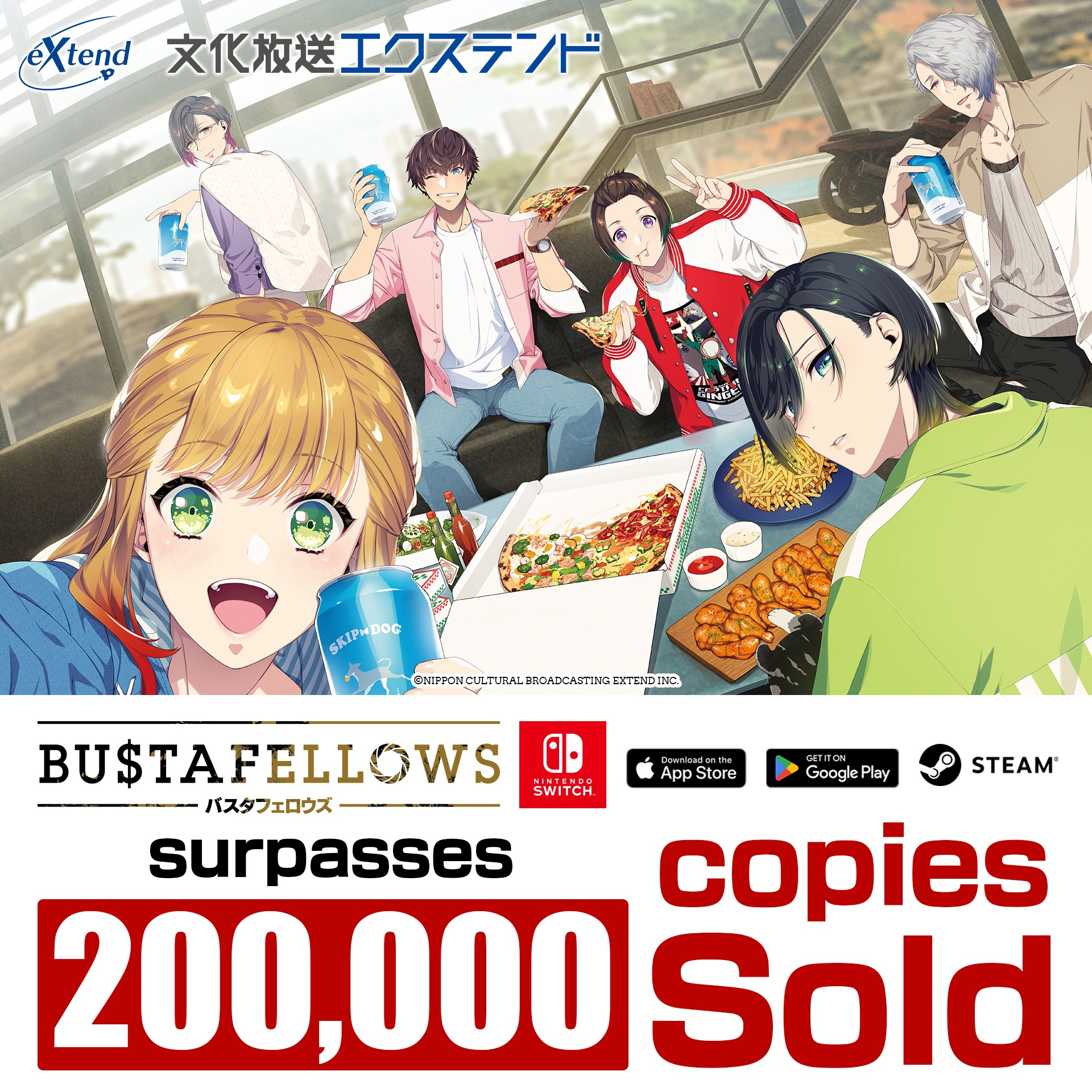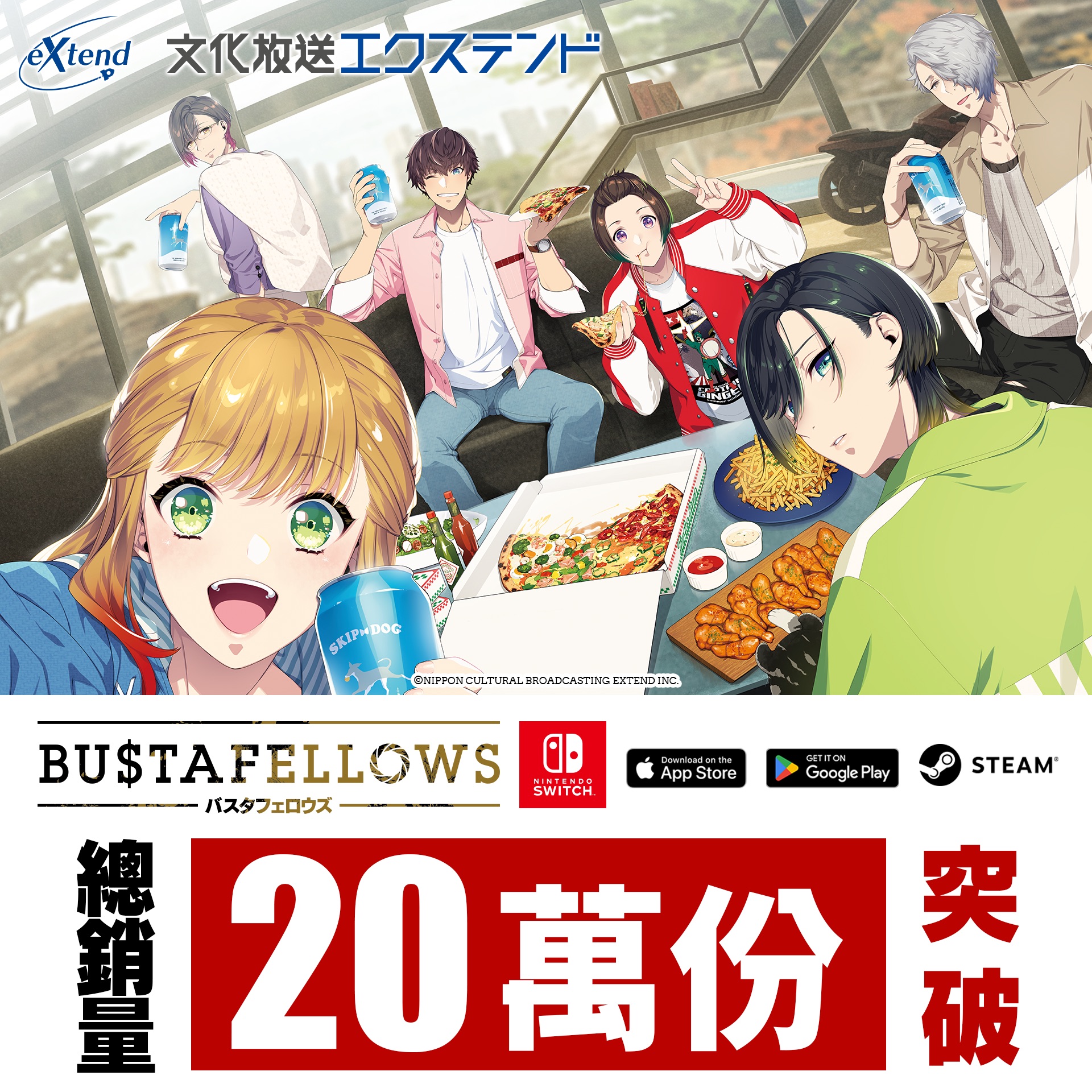「文化放送エクステンド」很高興宣布,於2019年12月發售的電影式文字冒險遊戲《BUSTAFELLOWS》,其日文版、英文版及中文版的累積總銷售已突破20萬份。