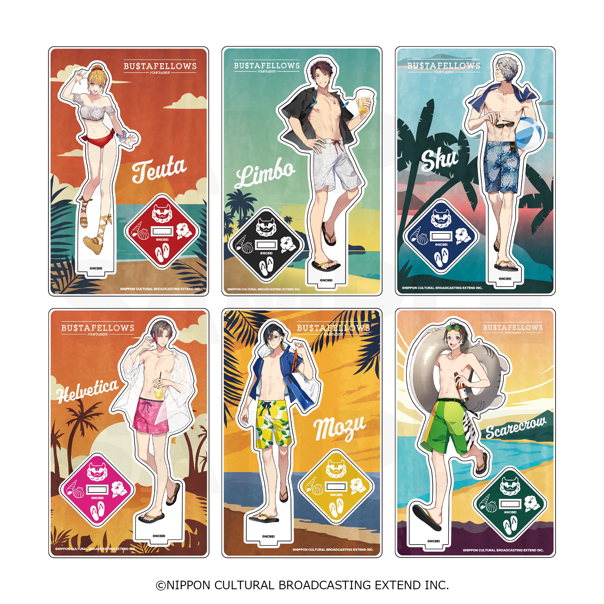 #バスタフェin沖縄 のイラストがアクリルスタンドにになりました。水着を着た「BEACH style」で、夏らしい姿をぜひ飾ってお楽しみください。「BUSTAFELLOWS」シリーズのアクリルスタンドと台座の付け替えが可能です。